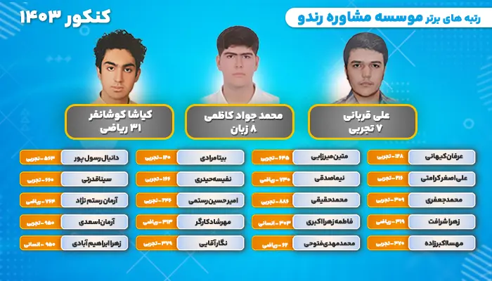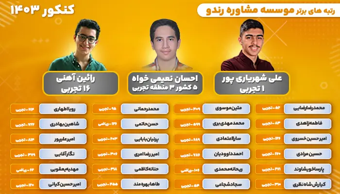 بخشی از رتبه ها، قبولی ها و مصاحبه و رتبه برتر های کنکور